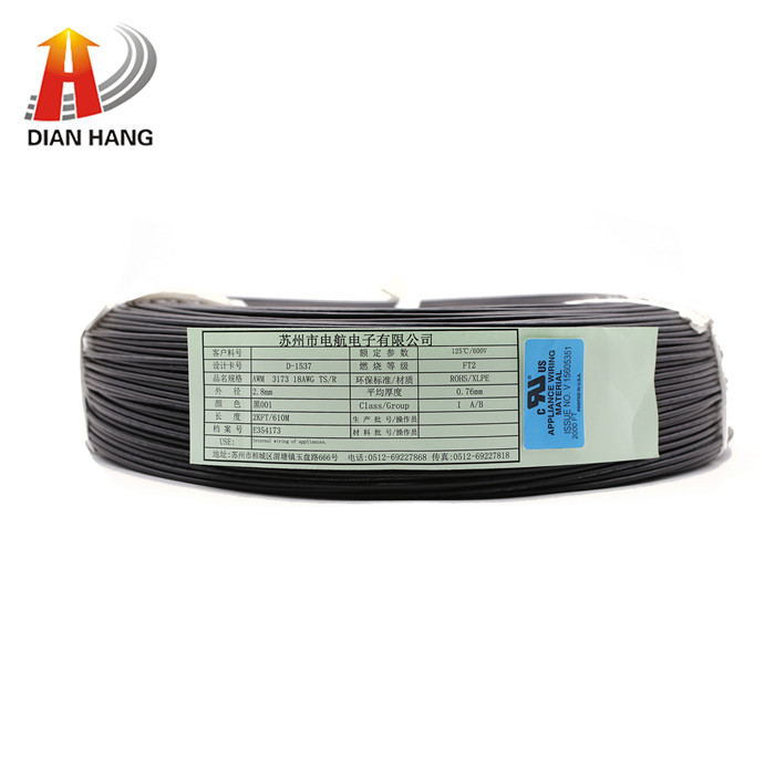 額定溫度:125℃ 額定電壓:600V 參考標(biāo)準(zhǔn):UL758,UL1581,CSA C22.2No.210.2 導(dǎo)體使用單支或絞合26~9AWG 鍍錫或裸銅 XLPE 絕緣,符合ROHS、REACH環(huán)保標(biāo)準(zhǔn) 通過(guò)UL 水平及CSA FT2 阻燃測(cè)試 絕緣厚度均勻、易裁線、易剝皮